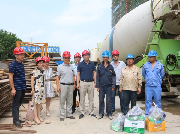 7月26日上午,陶良敬同志再次帶領(lǐng)“送清涼”小組來到十七冶產(chǎn)業(yè)園、安徽水利和順名都城等項(xiàng)目部,慰問在高溫下仍奮戰(zhàn)在施工現(xiàn)場的同事們,為他們送去防暑降溫的物品,送上清涼與關(guān)懷。
