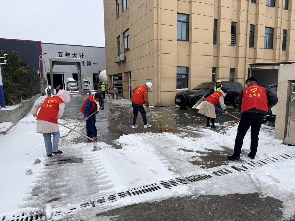 近日,合肥地區(qū)遭遇持續(xù)強降雪與低溫天氣,建工瑞特新材、建工擎工新材各廠區(qū)道路積雪結冰,嚴重影響運輸與作業(yè)安全。為確保生產(chǎn)運營有序,公司第一時間組織黨員、青年團員開展“保安全、保暢通”鏟雪除冰行動。